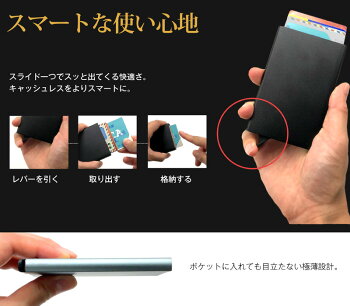 スキミング防止 アルミカードケース 全4カラー 【主な特徴】 ■スマートな使い心地 片手で使えるスライド仕様。